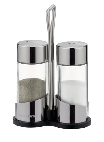 Fackelmann 46652 Salt- och pepparset senapsset, salt- och pepparkanna, senap, salt shaker, peppar shaker, rostfritt stål, glas, 8,5 x 3 cm