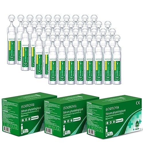 BORNOVA Fysiologiskt Serum Natriumklorid - Steril Isotonisk Saltlösning Spädbarn Baby - Förebyggande mot förkylning - Lindring vid nästäppa Ögon och öronhygien - Sårtvätt (3 BOX, 120 Enstaka Doser)