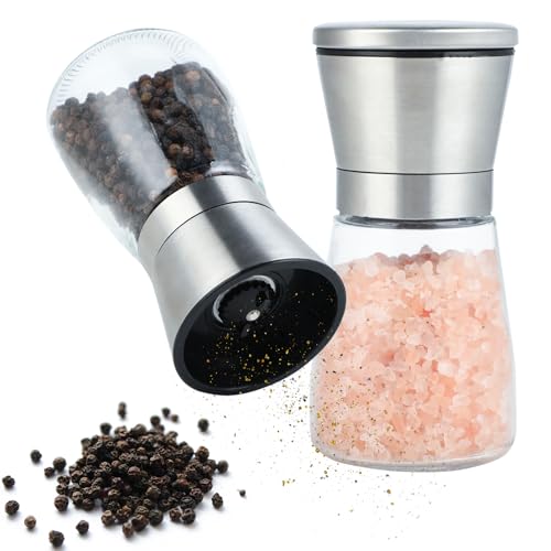 Uppsättning av 2 peppar och saltströare med justerbar keramisk kvarn inkl. pepparkvarn, salt pepparströare, chilikvarn-två lägen helt avtagbar, diskmaskinssäker