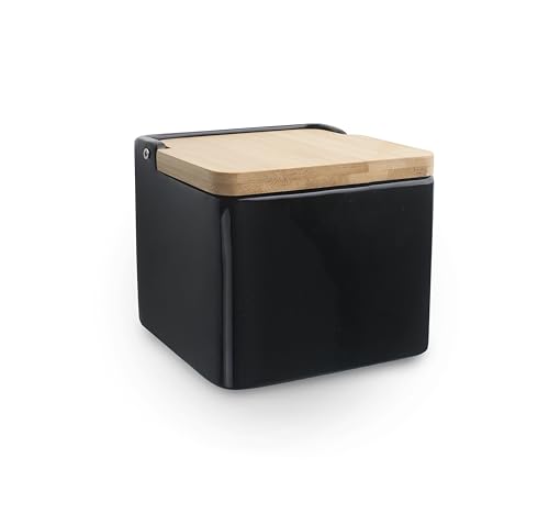 Saltströare - 11 x 11 cm svart fyrkantig saltskakare, elegant och modern design, perfekt för bordstillbehör och daglig användning.