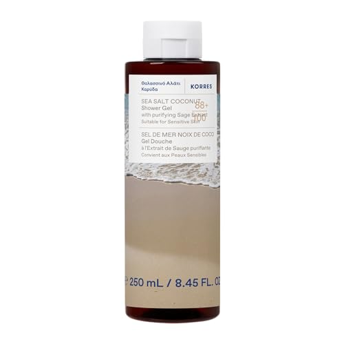 KORRES SEA SALT COCONUT Duschgel med salvia-extrakt, krämig kokosnöt havssalt, dermatologiskt testad, vegan, silikon- och parabenfri, 250 ml