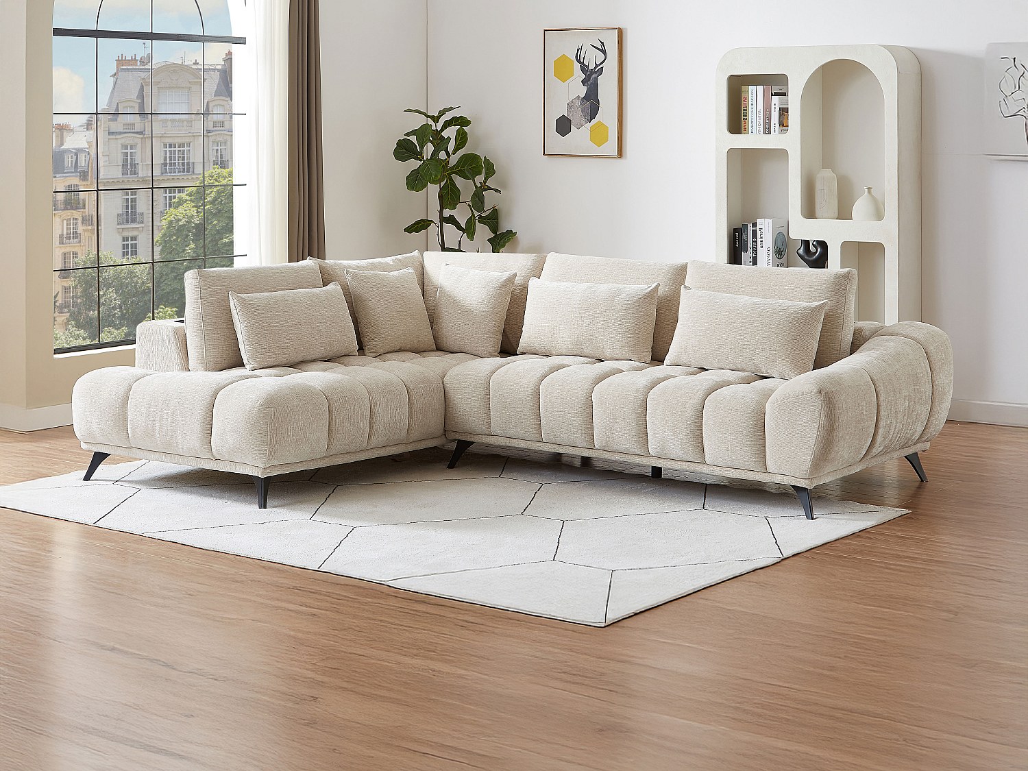 Vänster hörnsoffa med lutbart ryggstöd i beige texturerad sammet MAVIRO