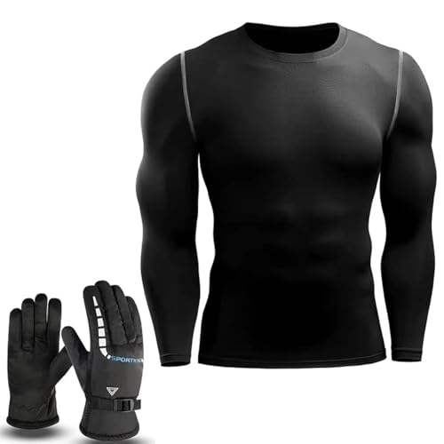 Strumpbyxor herr svarta långärmade-m storlek fitnesskläder högelastiska träningsfotboll snabbtorkande kläder med svarta ridhandskar vintervattentäta förtjockade skidhandskar i sammet
