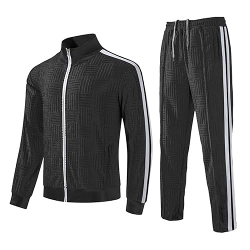 KISSQIQI 2 delar för män hel dragkedja träningsoveraller gyllene sammet sportkostymer vardagliga kläder jacka och byxor fitness träningsoverall set, Kolsvart, XL