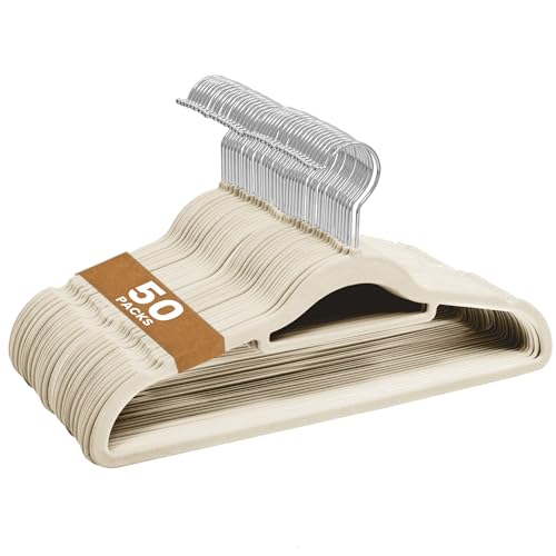 Sasha Morel 20-pack klädhängare i sammet – halkfria sammetshängare för kläder, platsbesparande vuxenhängare med slipsorganisering och vridbara krokar – klädhängare garderobsförvaring – kräm