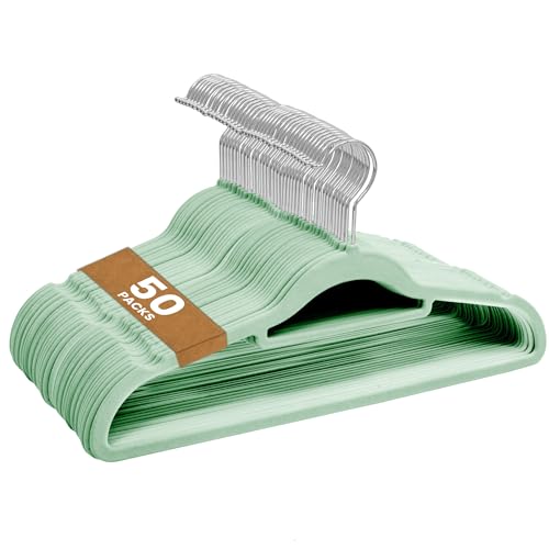 Sasha Morel 50-pack klädhängare i sammet – halkfria sammetshängare för kläder, platsbesparande vuxenhängare med slipsorganisering och vridbara krokar – klädhängare garderobsförvaring – mintgrön