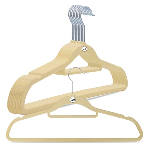 G4GADGET 10-pack krämfärgade klädhängare i sammet, 41 cm med slipstång – halkfri, platsbesparande, hållbara hängare för kläder, jackor, kostymer och byxor – 360° roterande krok