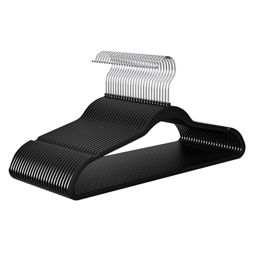 Galgar 50-pack – svarta plasthängare utan sammet för kläder – slitstark smal klädhängare – platsbesparande garderobshängare med kromkrok, icke-flockade hängare för klänningar rockar skjortor jackor