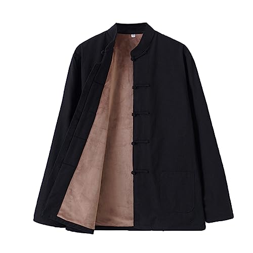 Vinter bomull tang kostym herr plus sammet Tai Chi uniform långärmad kinesisk traditionell kinesisk klädsel toppar, hanfu jacka kung fu kläder ar kostym, svart, XXL-3XL