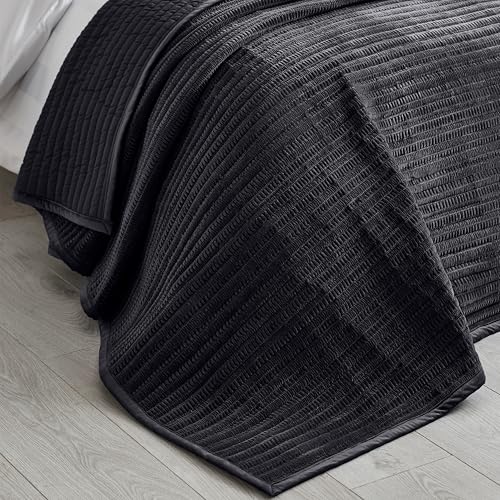 Catherine Lansfield Gitter Cut sammet quiltad 220 x 230 cm överkast svart