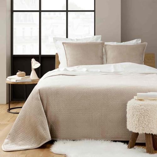 douceur d'intérieur, Quiltat överkast (220 x 240 cm) naturlig solange, enfärgad sammet