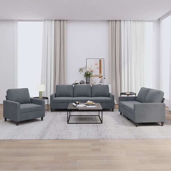 vidaXL Soffgrupp med dynor 3 delar Mörkgrå sammet 3201681