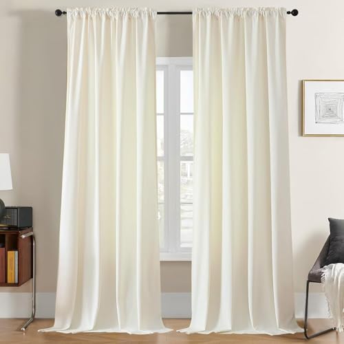 Joydeco Vardagsrum sammetsgardiner set om 2 stycken H 240 x B 140 elfenbensvit, elegant sammetsgardin, mörkläggningsgardiner, termisk gardin, köldskydd, ogenomskinligt, sovrum
