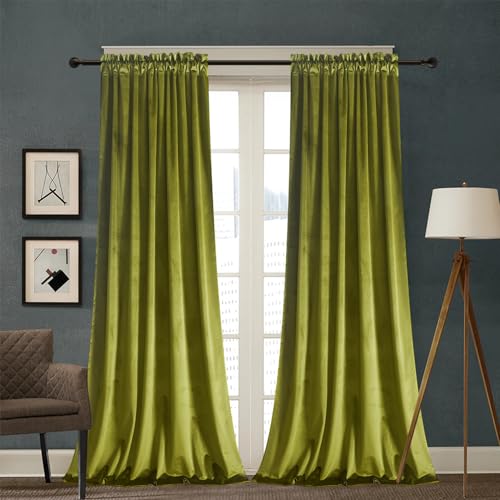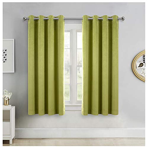 Singinglory gröna sammetsgardiner 132 x 153 cm, mörkläggning värmeisolerat genomföringsfönstergardin 2 paneler set för sovrum och vardagsrum (B 132 x L 163, limegrön)
