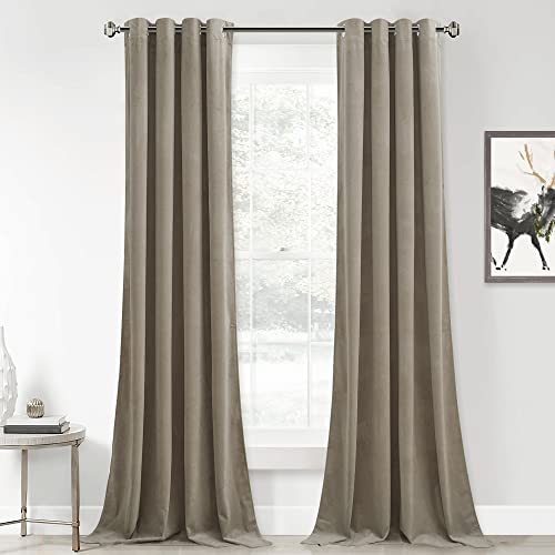 Frodig dekor Prima sammetsgardiner färgblock rum mörkläggningsgardiner fönsterpanel set för vardagsrum, matsal, sovrum (par), 213 cm L, grå