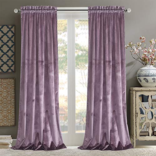 Roslynwood Lyxiga sammetsgardiner – ljudabsorberande sammetsdraperier med stångficka för matsal/festdekor, lavendel 52 B x 108 l/2 paneler