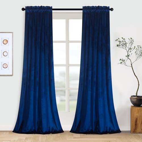 StangH Extra långa sammetsgardiner – marinblå uteplats dörrdraperier värmeisolerade gardiner för vinter högt tak sammetsgardiner mörkläggning bakgrund för teater/sovrum, B 132 x L 300 cm, 2 paneler