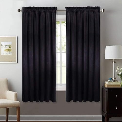 StangH Supermjuka mörkläggningsgardiner och tjocka sammetsgardiner, värmeisolerade, energieffektiva med stångfåll, svart, 132 cm B x 160 cm L 2 stycken
