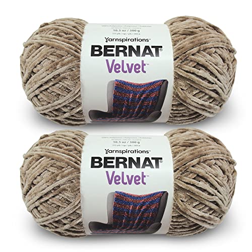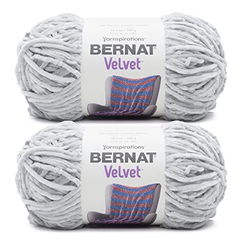 Bernat grå (Misty Grey), sammetsgarn – 2-pack med 300 g/10,5 oz – polyester – 5 skrymmande – 288 meter – stickning/virkning