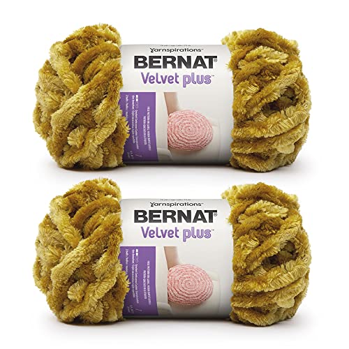 Bernat Plus gyllene mossa, sammetsgarn – 2-pack med 300 g/10,5 oz – polyester – 6 superskrymmande – stickning/virkning