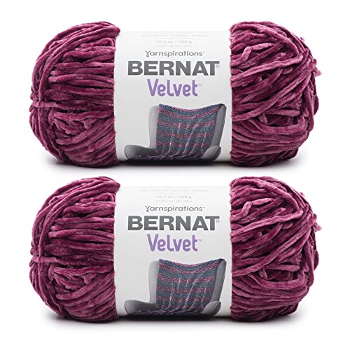Bernat vinröd (Crushed Burgundy) sammetsgarn – 2-pack med 300 g/10,5 oz – polyester – 5 skrymmande – 288 meter – stickning/virkning
