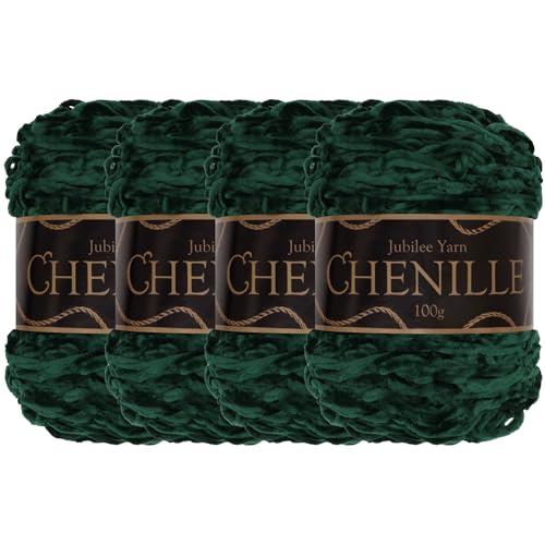 JubileeYarn Sammetsgarn, medium (worsted) vikt, 100 g/nystan, smaragdgrön, mörk djungelträgrön sammet, virk- och stickgarn, 4 nystan