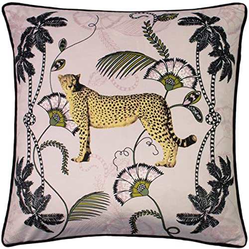 Paoletti Cheetah sammetskudde – majestätisk djungeldesign med sprucken kant (rodnad – 45 x 45 cm)