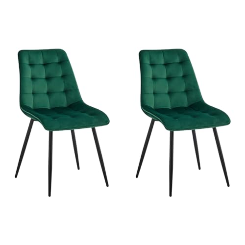 GrandCA HOME Matrumsstolar, set om 2, köksstol, matstol, sammetskudde och metallben, lämplig för vardagsrum/matsal/kök/sovrum/borste (mörkgrön, 2)