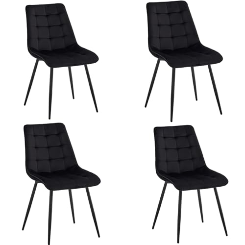 GrandCA HOME Matrumsstolar set om 4, köksstol, sammetskudde och metallben, lämplig för vardagsrum/matsal/kök/sovrum/borste (svart, 4)