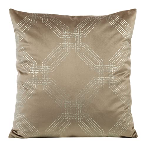 Elegant sammetskudde dekorativ kudde med tryck 45 x 45 cm överdrag sammet örngott mjuka soffkuddar, bladmönster 1, brun