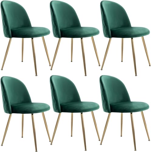 JINPALAY Uppsättning av 6 sammetsstolar, moderna köksstolar för matsal, vadderade stolar med hög rygg, för sovrum, vardagsrum, gyllene metall, justerbara (grön, 6)