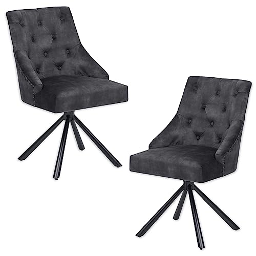 Stella Trading Johanna matrumsstolar set om 2 med svart metallram, aubergine-bekväma sammetsstolar för matsal och vardagsrum, 54 x 91 x 62 cm