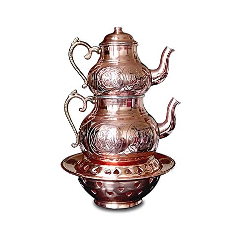 Generic Handgjord koppar tekanna med ottomanvärmare, autentiskt graverat mönster, samovar, vattenkokare, 3 delar