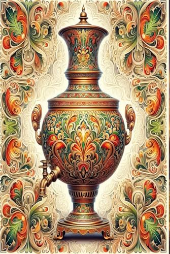 Samovar in Khokhloma Style: A Russian Folk Art Journal: Heart of the home, represents hospitality, unity, and comfort,