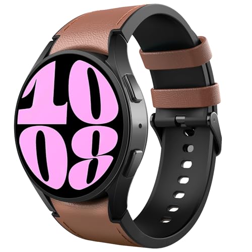 TiMOVO No Gap Leather Hybrid Silicone Strap Compatible with Samsung Galaxy Watch7 6 5 4 40/44mm, Watch 4 6 Classic 47 43 42mm, Watch 5 Pro 45mm, 20mm Quick Release Genuine Straps for Women Men, Brown