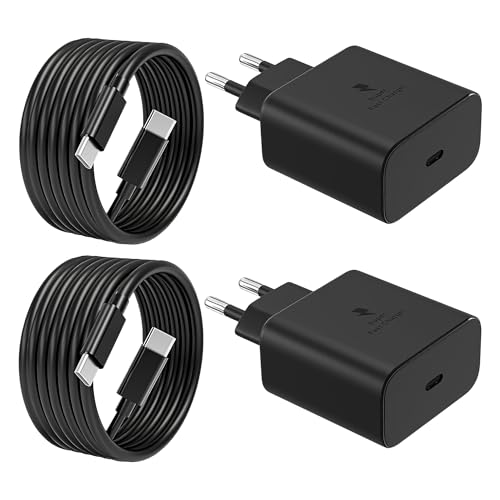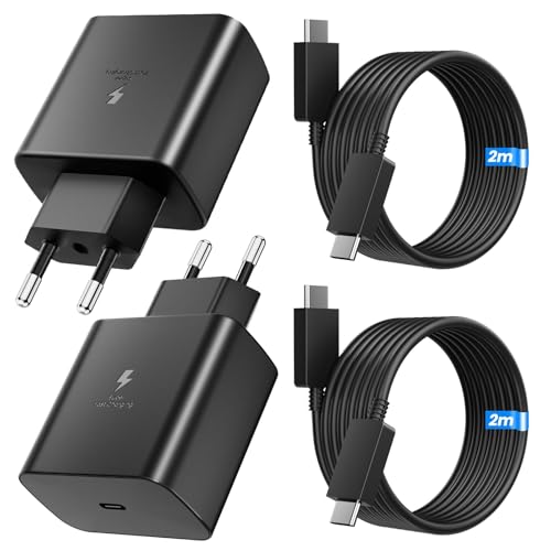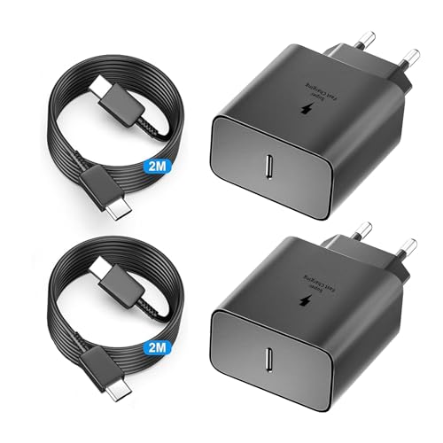 2-Pack 45W USB C-Laddare, Snabbladdare PD 3.0 Strömförsörjning med Laddningskabel USB-C Snabbladdningskabel 2 m för Samsung Galaxy S25/S24/S23/S22/S21 Ultra/S20FE/A55 A54 A53 A52 A51 A50 A34 A15