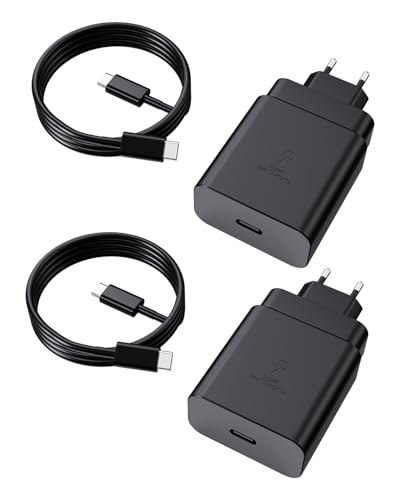 2 Pack 45 W USB C laddare Kompatibel med Samsung Galaxy Ultra S25 S24 S23 S22 S21 S20 A54 A53 A33 PD3.0 och 1,8 m C till C laddningskabel. 5A