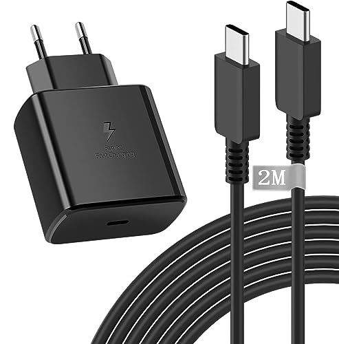 45W USB C-Laddare, Snabbladdare PD 3.0 Strömförsörjning med Laddningskabel USB-C 2 m för Samsung Galaxy S25/S24/S23/S22/S21 Ultra/Plus/S20FE/Note20/10+/A55 A54 A53 5g A52 A51 A50 A40 A34 A33 A15