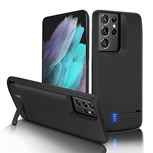 Gladgogo Batterifodral för Samsung Galaxy S21 Ultra, 5000 mAh med Fällbart Stativ (6,8 Tum)