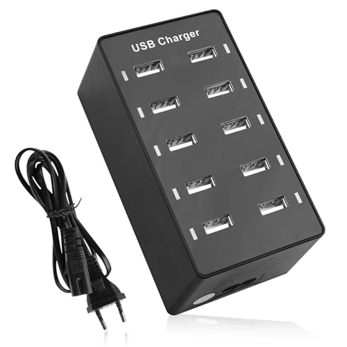 LEKEFET USB-laddare multifack, 50 W laddare 10 port laddningsstation, en anslutning 5 V/2,4 A, USB-laddningsstationer, för iPhone iPad Samsung Galaxy Pixel Huawei Xiaomi – svart