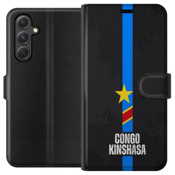 Samsung Galaxy A35 Plånboksfodral Kongos Kinshasas flagga i blått, rött och gult är en elegant symbol med stark symbolik och stil.
