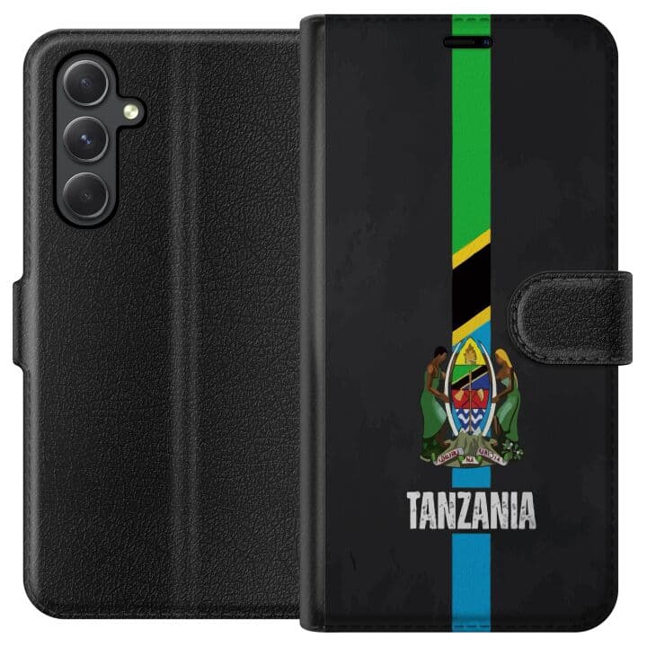 Samsung Galaxy A35 Plånboksfodral Tanzaniska flaggdesign med grönt, blått, svart och gult motiv inspirerat av naturen, havet och landets styrka.