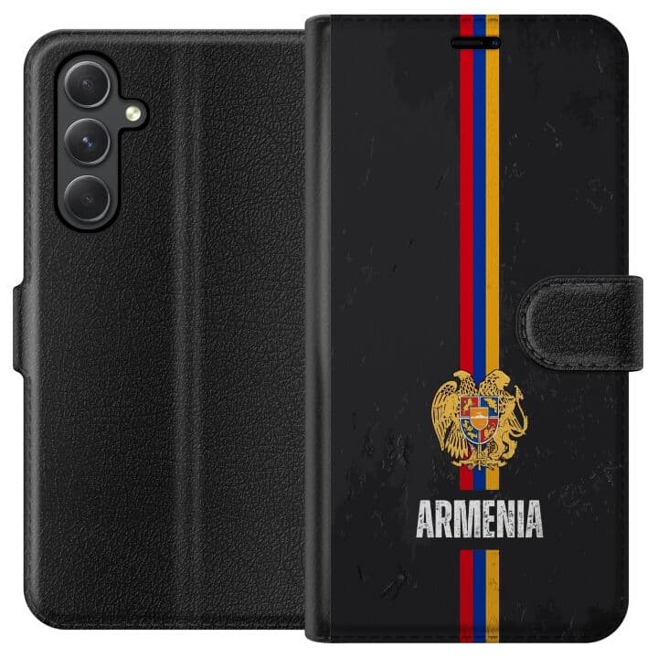 Samsung Galaxy A35 Plånboksfodral Armenien flagga och emblem elegant mönster med nationella färger röd blå gul design med kultur historia och stolthe