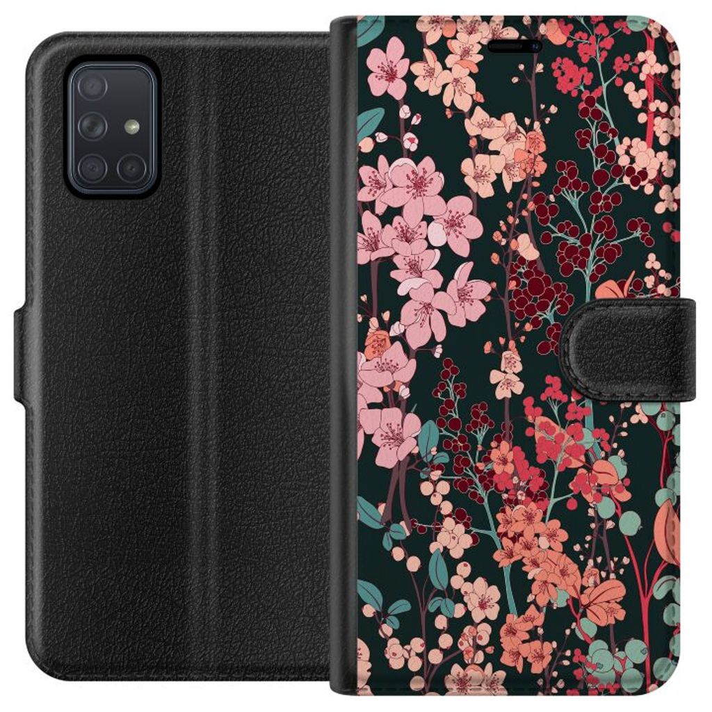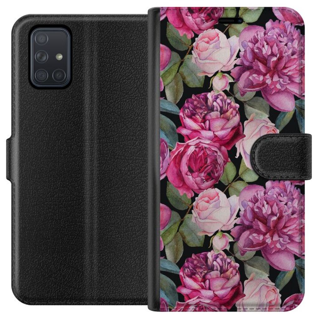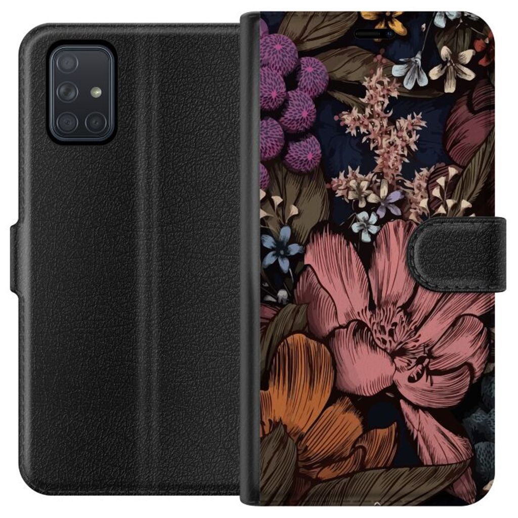 Samsung Galaxy A71 Svart Plånboksfodral Blommor