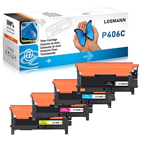 LOSMANN 4x Toner kompatibel för Samsung 406S CLP-360 CLT-K406S CLT-C406S CLT-M406S CLT-Y406S för Samsung CLP-360 CLP-360N CLP-360ND CLP-362 CLP-363 CLP-364 CLP-365 CLP-365 CLP-360 5W 5W CLP-367W x 36L