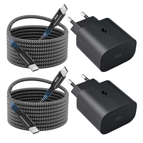 2-Pack 25W USB C-Laddare, Snabbladdare Super Fast Charger med 2 m PD Snabbladdningskabel Nylon Typ C Laddningskabel för Samsung Galaxy S25 S24 S23 S22 S21 S20 Ultra/FE S10 S9 A55 A54 A53 A35 A15