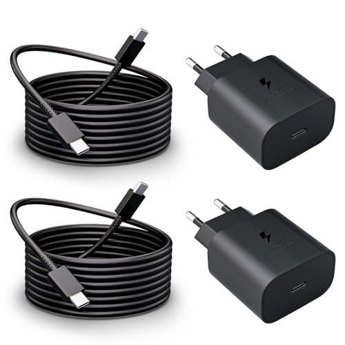 2-Pack 25W USB C-Laddare, Snabbladdare Strömförsörjning Super Fast Charger med 2 m Snabbladdningskabel för Samsung Galaxy S25 S24 S23 S22 Ultra S21 S20FE S10 S9 A55 A54 A53 5g A34 A15 Mobiltelefon