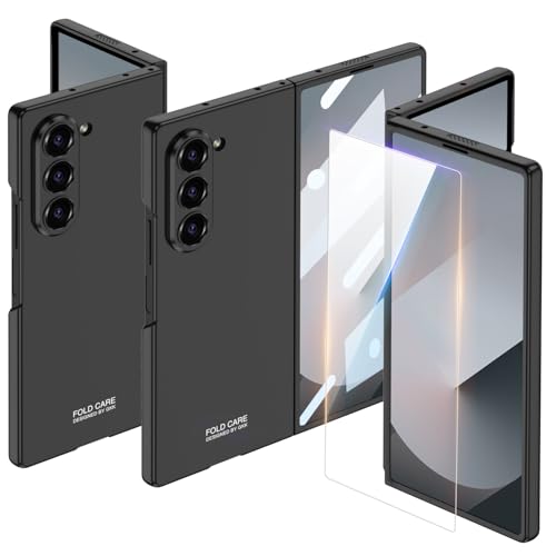 FTRONGRT Fodral till Samsung Galaxy Z Fold 6, PC hårt skal heltäckande skal + skärm härdat glas film kombinationsdesign, anti-fall skydd för Samsung Galaxy Z Fold 6. Svart: