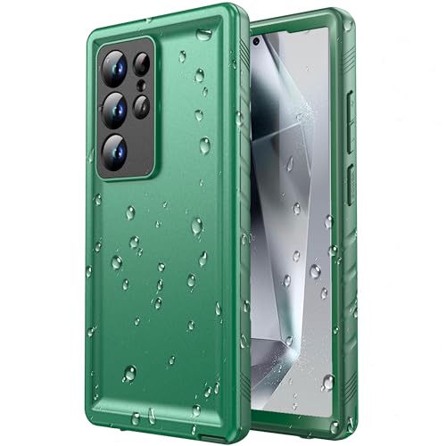 SPORTLINK för Samsung Galaxy S24 Ultra vattentätt fodral – 360 helkropp kraftigt stötsäkert skydd fram och bak [inbyggd skärm + kameraskydd] [dammtät] [IP68 undervatten] – grön