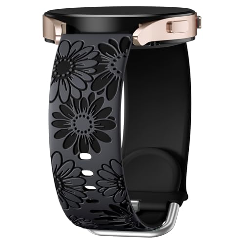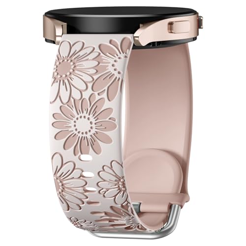 Netolo Floral graverat armband kompatibelt med Samsung Galaxy Watch 7 6 5 4 40 mm 44 mm, Galaxy Watch 6 4 Classic/5 Pro 45 mm/FE/Active 2, 20 mm mjukt silikonarmband för kvinnor
